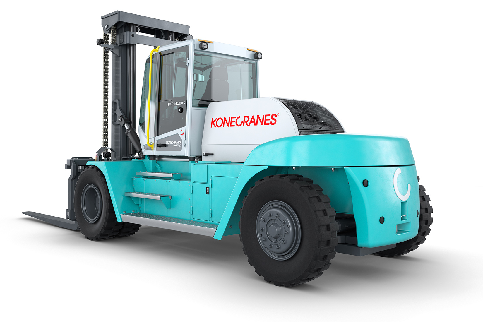 Kjør bærekraftig, trygt og komfortabelt med den kraftige elektriske Konecranes E-VER gaffeltrucken, designet for dagens og fremtidige behov for utslippsfri transport.