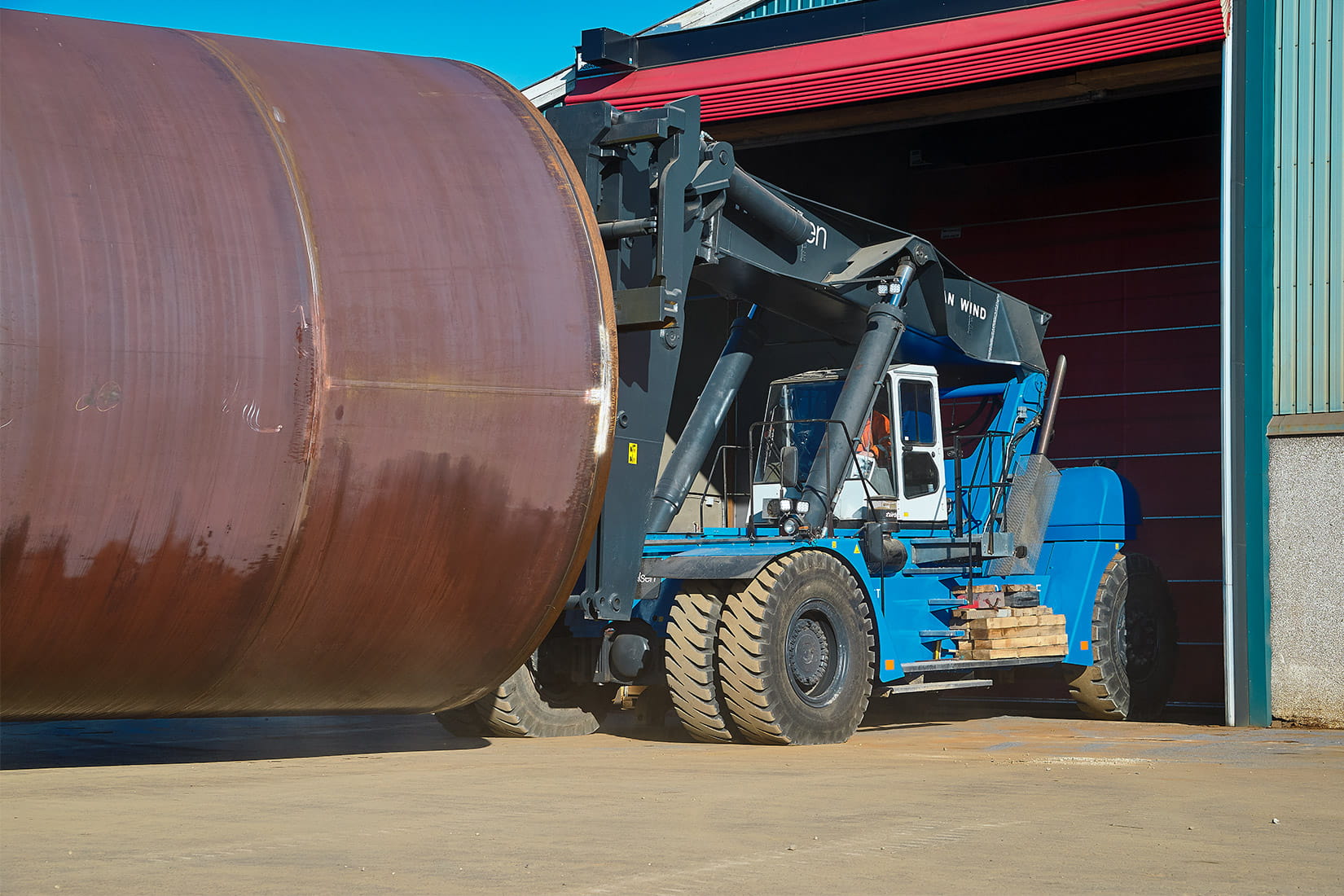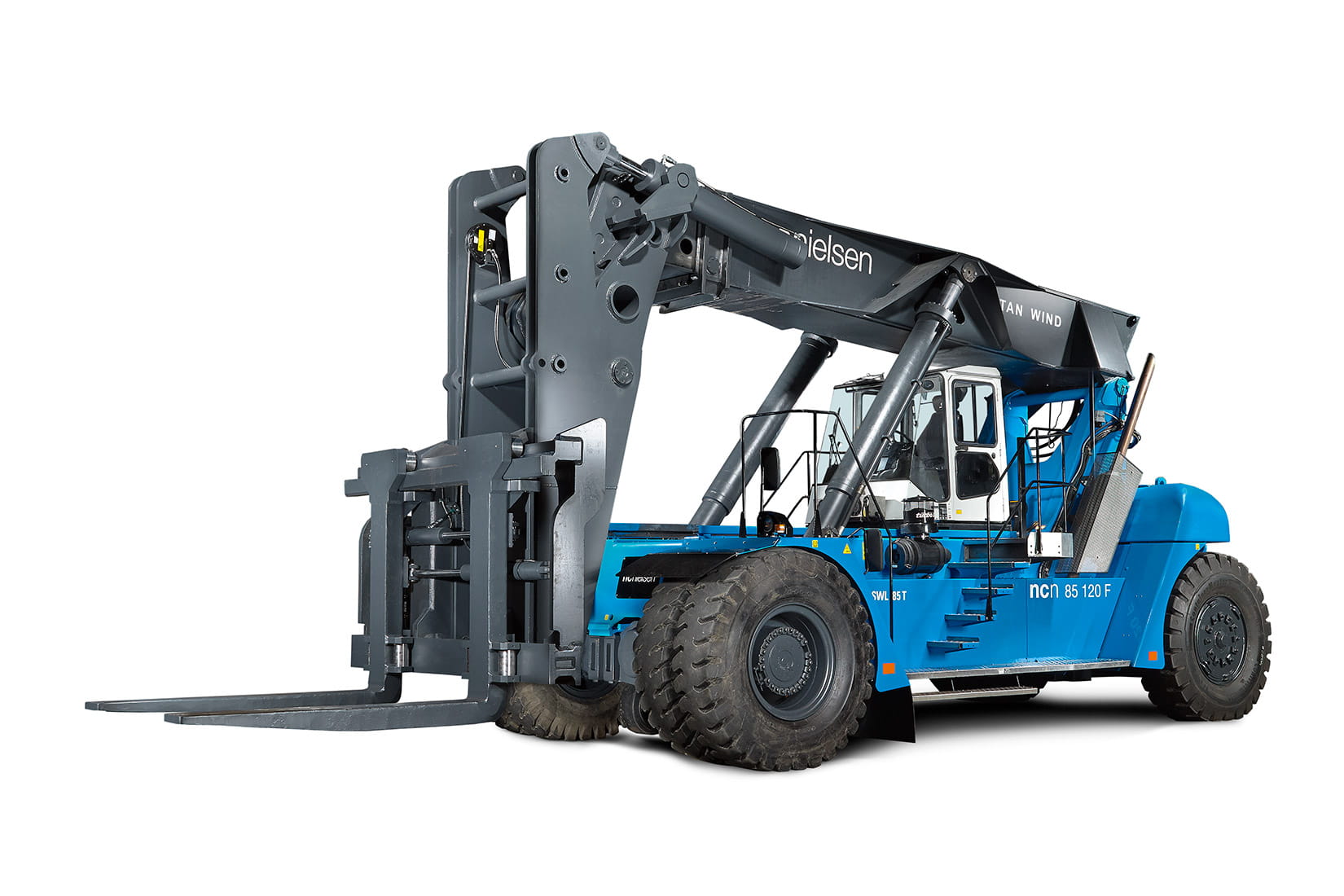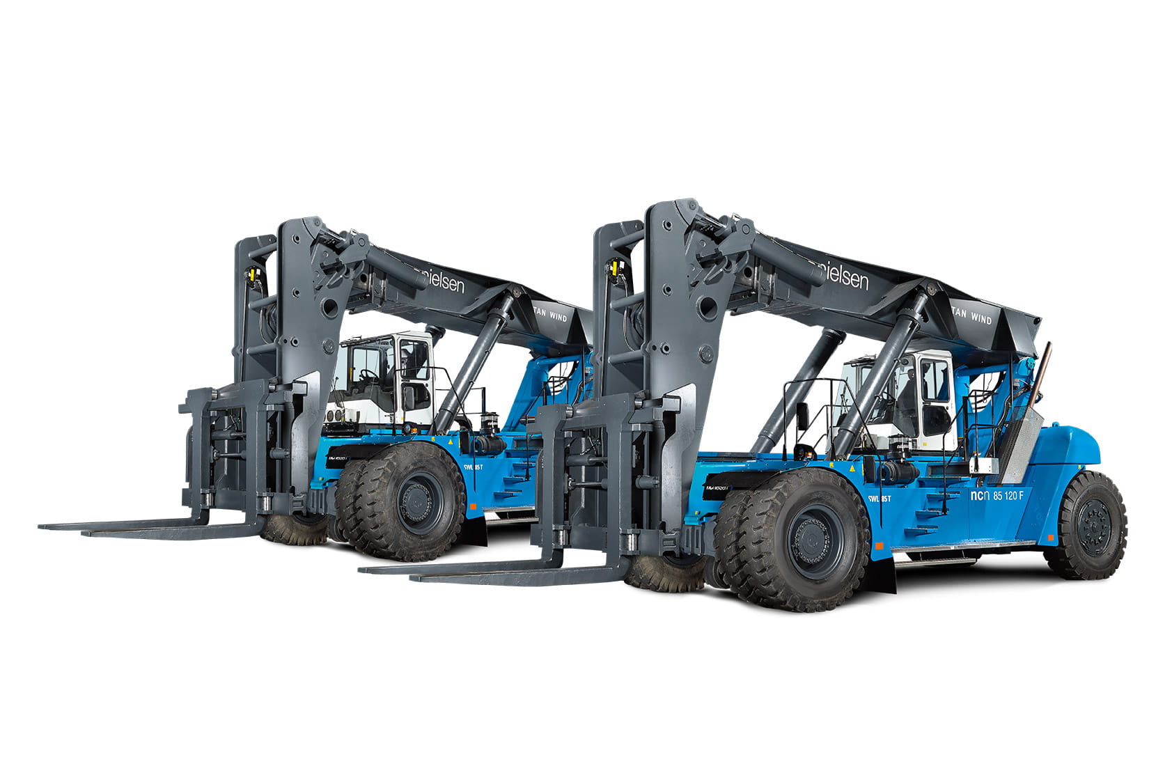 De spesialbygde SMV-reachstackerne er råsterke spesialmaskiner som kan løfte 85 tonn hver og 140 tonn til sammen. Faktisk er de verdens største teleskopgaffeltrucken – og som de første av sin type i Danmark er maskinene utstyrt med veldig sterke gafler (gaffellommer i neshorn) samt forkortet og forsterket bom for de tunge løftene.